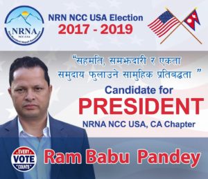 बर्तमान कार्यसमितिको तय हुने बखत सानफ्रान्सिस्कोलाई छाडिदिने सहमतिमा अहिलेका अध्यक्ष पूर्ण बानियांलाई सहयोग गर्ने र त्यसबेला अब निर्वाचित हुन गैरहेको समितिमा बिना विवाद लस एन्जलसलाई सभापती पदमा समर्थन गर्ने सहमती भएको थियो । सान्-फ्रान्सिस्को र लस एन्जलस बिच सौहार्दता र भाईचाराको बिकास गर्ने भन्दै निर्वाचनमा नगई निर्विवाद बर्तमान कार्यसमिती बनेको थियो । त्यतिबेला बर्तमान उपाध्यक्ष रामबाबु पाण्डेलाई स्वत: च्याप्टर सभापतिमा सर्वसम्मत चयन गर्न सान्-फ्रान्सिस्को र लस एन्जलसका सामाजिक अगुवाहरु बिच भद्र सहमती बनेको थियो । फलस्वरुप; एनआरएन निर्वाचन हुने हल्ला चल्ने बित्तिकै ‘सहमती कायम होला’ भनेर पाण्डेले अध्यक्ष पदमा उम्मेद्वारी घोषणा गरे । सहमती, समझदारी र एकता तोडिएको भन्दै ‘अब जुनसुकै अवस्थामा पनि आफु चुनौतीको सामना गर्न तयार रहेको’ पाण्डे बताउंछन ।