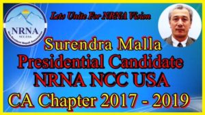 निर्वाचन पछी सर्ने थाहा भएर हो या ‘सरिहाल्छ, विस्तारै मिलाएर उठम्ला नि’ भनि ठानेर हो, च्याप्टर र एनसीसीमा उम्मेद्वारी घोषणा भएका समाचारहरु अझै थपिनेवाला छन । अझै, आईसीसीमा उम्मेद्वारीको हल्लाले त प्राथमिकता पाएकै छैन । यसरी उम्मेद्वारी बढ्ने क्रममा सबैभन्दा ठुलो एनसीसीको शायद तेस्रो बढी सदस्य संख्या रहेको क्यालिफोर्निया राज्यको निर्वाचन माहौलले यसपटक ‘शक्ती, समर्थन र विजय’को गरमागरम ज्वारभाटा फ्याक्न थालेको छ । लस एन्जलसलाई कर्मथलो बनाएर समाजसेवामा निरन्तर लागेका एनआरएन क्यालिफोर्निया च्याप्टरका वर्तमान उपाध्यक्ष रामबाबु पाण्डे र सान्-फ्रान्सिस्कोलाई कर्मथलो बनाएर त्यसरी नै अघि बढेका सोही कार्यसमितिका वर्तमान सचिव सुरेन्द्र मल्ल दुबैले अध्यक्ष पदमा आ-आफ्नो उम्मेद्वारी घोषणा गरेपछि तातेको छ, क्यालिफोर्निया ।